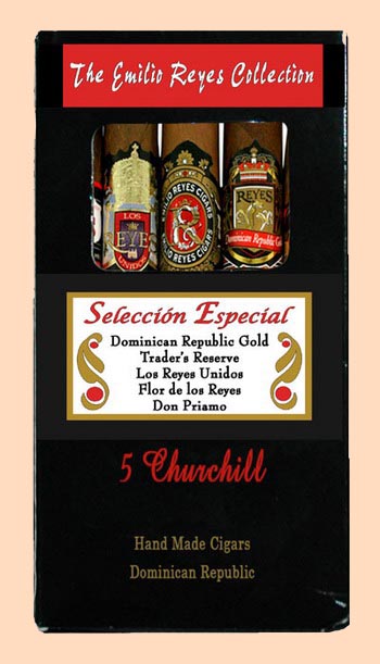 Druga nowa oferta to Emilio Reyes Churchill Variety Pack, czyli 5-cygarowy sampler Churchillów(7 "x 50) z najbardziej popularnych marek Emilio Reyes'a: Dominican Republic Gold z 10-letnimi liśćmi; Don Priamo; Los Reyes Unidos; Flor de los Reyes: i box-pressed(o kwadratowym przekroju) Traders Reserve z 6-letnim fillerem.